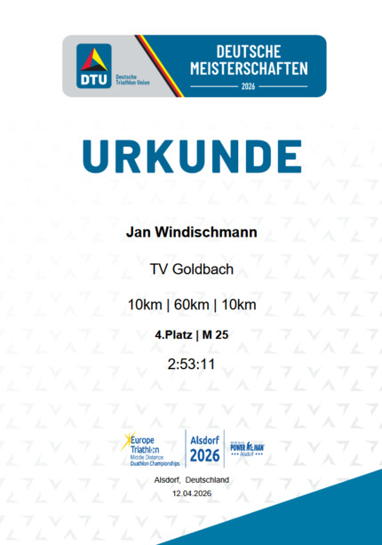 Diese Titeljagd, bei der auch unser TV`ler Jan Windischmann am Start war, führte beim Klassiker im Westen Deutschlands in der Städteregion Aachen, über 10 Kilometer Laufen, 60 Kilometer Radfahren und weitere 10 Kilometer Laufen.