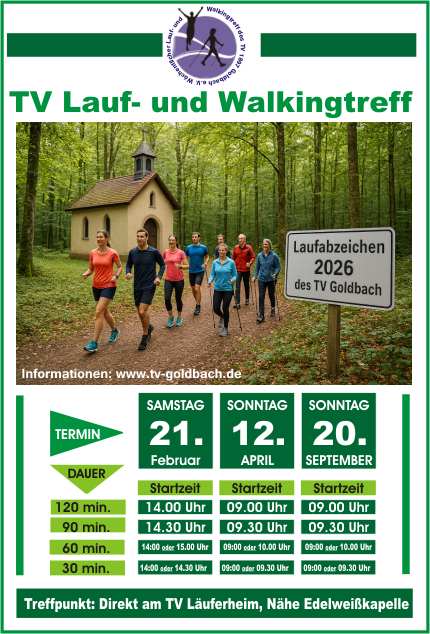 Zum 2.Termin des diesjährigen Laufabzeichens lädt der TV Goldbach am Sonntag, 12.04.2025 um 09:00 Uhr herzlich ein.