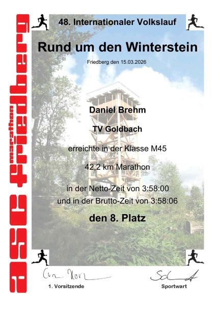Unser Daniel Brehm startete am 15.03.26 beim Friedberger Wintersteinlauf über die Marathondistanz.