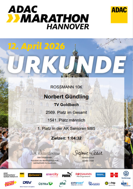 Unser Norbert Gündling gönnt sich auch weiterhin keine läuferische Pause und startete am Sonntag, 12.04. beim ADAC Marathon Hannover auf der 10 km Strecke.