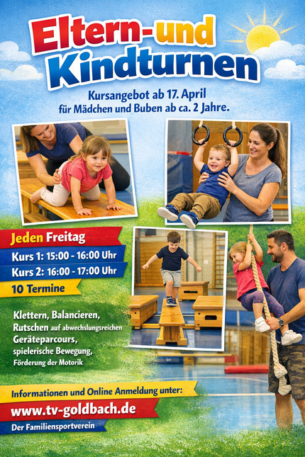 Ab 17.April 26 starten wir unsere Frühjahrs-Staffel mit dem Kursangebot "Eltern-Kindturnen".